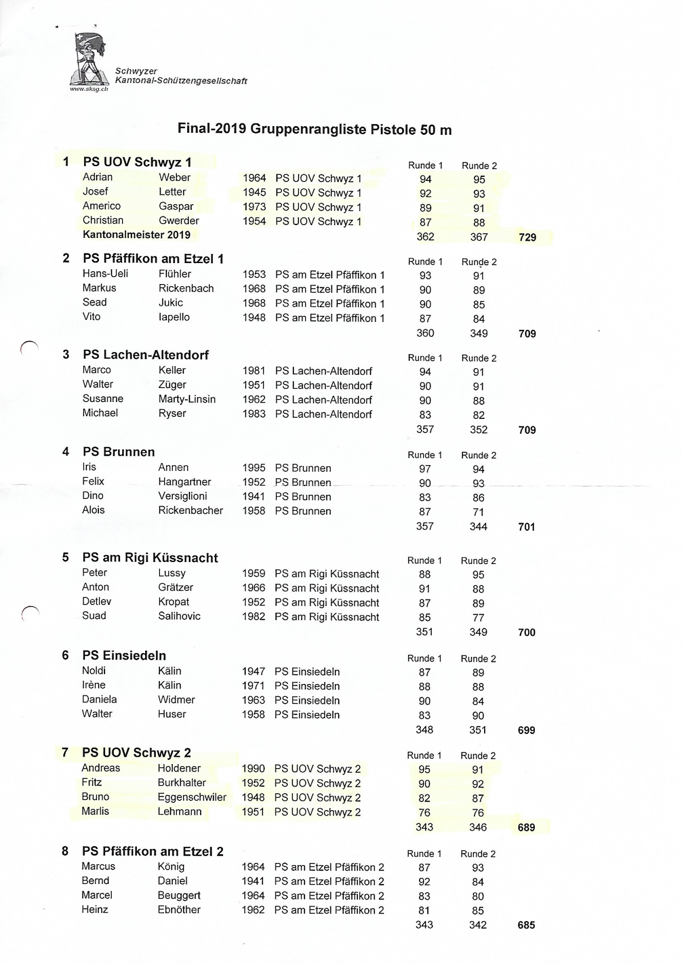 Ranglisten Ausschiessen 2024 Schützenkönigs Stich 2024 Meisterschafts Stich 50M 2024 Wildsau Stich 50M 2024 Mitglieder Stich 50M 2024 Ehrengaben Stich 25 M 2024 Schnellfeuer Stich 25M 2024 Ranglisten Ausschiessen 2023 Resultate Ausschiessen 2023 Ranglisten Ausschiessen 2021 Resultate Gruppenstich Resultate Meisterschaftstich Resultate Schützenkönigstich Resultate Whiskystich Resultate Ehrengabenstich Resultate Mitgliederstich Ranglisten Ausschiessen 2020 Resultate Ehrengabenstich Resultate Gruppenstich Resultate Meisterschaftststich Resultate Mitgliederstich Resultate Schützenkönigstich Resultate Whiskystich Resultate Sektion und Gruppe Rangliste Morgarten 2019 Bilder Absenden Eidg. Schützenfest Vetreanen Zürich 2019 Bericht Kantonalpräsident vom Eidg. Schützenfest Veteranen Zürich 2019 Rangliste Kantonalfinal 2019 Bundesbriefschiessen Bundesbriefschiessen 2018 Gesamtrangliste Bundesbriefschiessen 2018 Gruppenrangliste Bundesbriefschiessen 2018 Einzelrangliste Bundesbriefschiessen 2017 Einzelrangliste Bundesbriefschiessen 2017 Gruppenrangliste